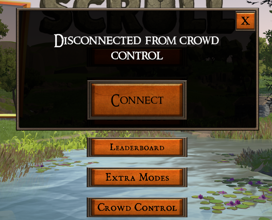 Click “Crowd Control” on the title screen to connect and start a session.